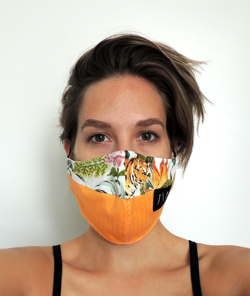 Three layers of tightly woven 100% cotton designed to contour your face for maximum comfort, nose wire for a customized fit, & elastic ear loops for ultimate security. Fashionable. Functional. Quality. Handmade. These large scale repeating print graphics make each one of our face masks unique. Our designer hand cuts and selects each pattern piece to make sure every mask is special. Please keep in mind that the mask you receive may not have the same layout as the photos shown due to large scale repeating patterns.